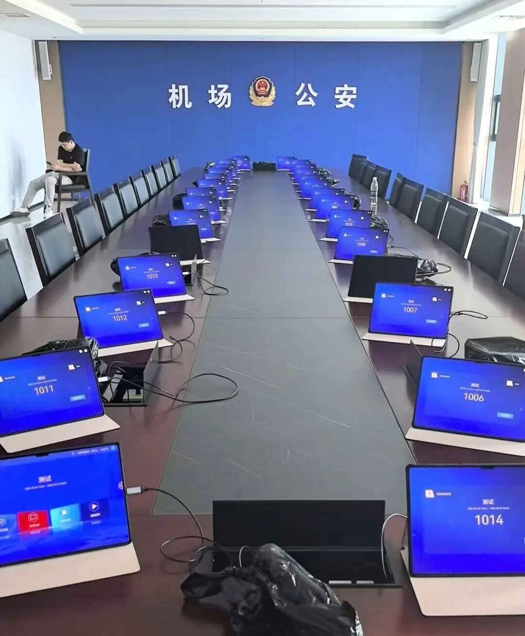 二、信息安全保障:会议室部署一台国产化电脑,无纸化会议系统主控端部署于电脑上。会前,会议材料通过主控端上传到会议系统,参会人员通过平板实时访问;结束后,主控端可以对材料统一备份或销毁;