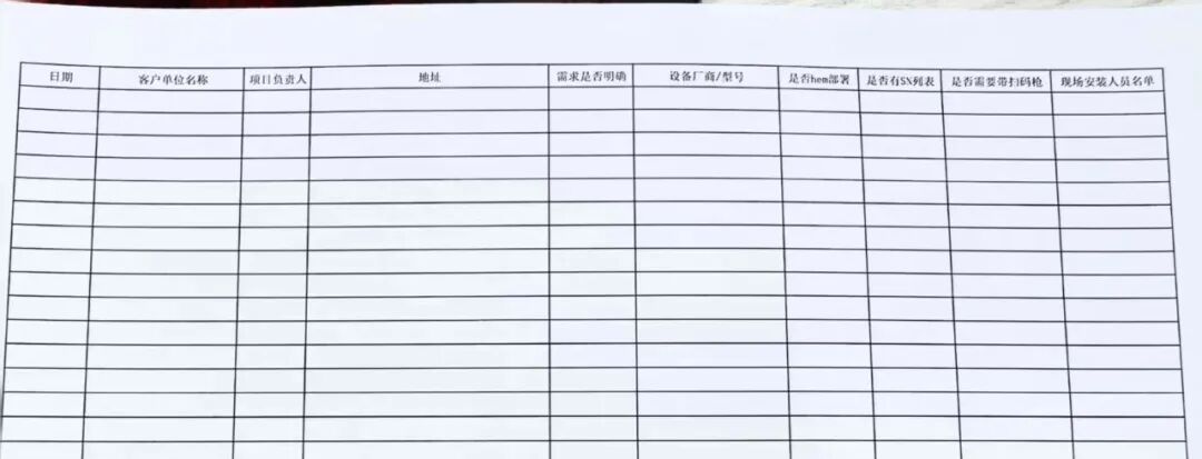 一直以来,领创团队秉持初心不断钻研,凭借娴熟的解决方案能力,成功交付了多个行业项目。除了专业技术优势,还有服务细节。领创精细化管理覆盖了项目全流程,顾问式服务热情周到,主动担当。领创人积极负责的工作态度保障了服务品质,让客户觉得贴心又安心。每个项目交付前的沟通了解很重要,去现场再手忙脚乱地调整会占用客户更多时间。所以在出发前,领创会通过标准化表单确认客户信息,如设备系统情况、是否hem部署、要不要带扫码枪等细节。逐一确认后,项目人员再带着准备的物料出发。这样标准化的筹备工作,提高了交付效率,也提升了客户体验。